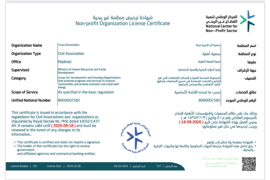 شهادة ترخيص الجمعية